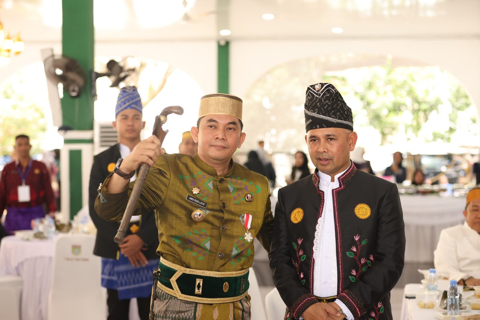 Komunitas Bugis Mantra Bumi juga menyerahkan senjata pusaka keris Tappi Lamba Pitu La Tenri Beta kepada Bang Arul, menambah kesan sakral pada momen tersebut.