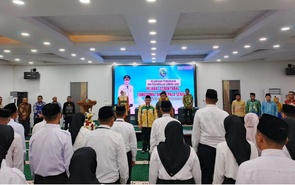 Suaraterpercaya, Kotabaru – Bupati Kotabaru, H. Sayed Jafar, melantik 51 Kepala Sekolah, 11 Pejabat Struktural, dan 18 Pejabat Fungsional di lingkungan Pemerintah Kabupaten Kotabaru di Aula Mesjid Kapal Pesiar Syaidina Jafar. (2/2/2025)